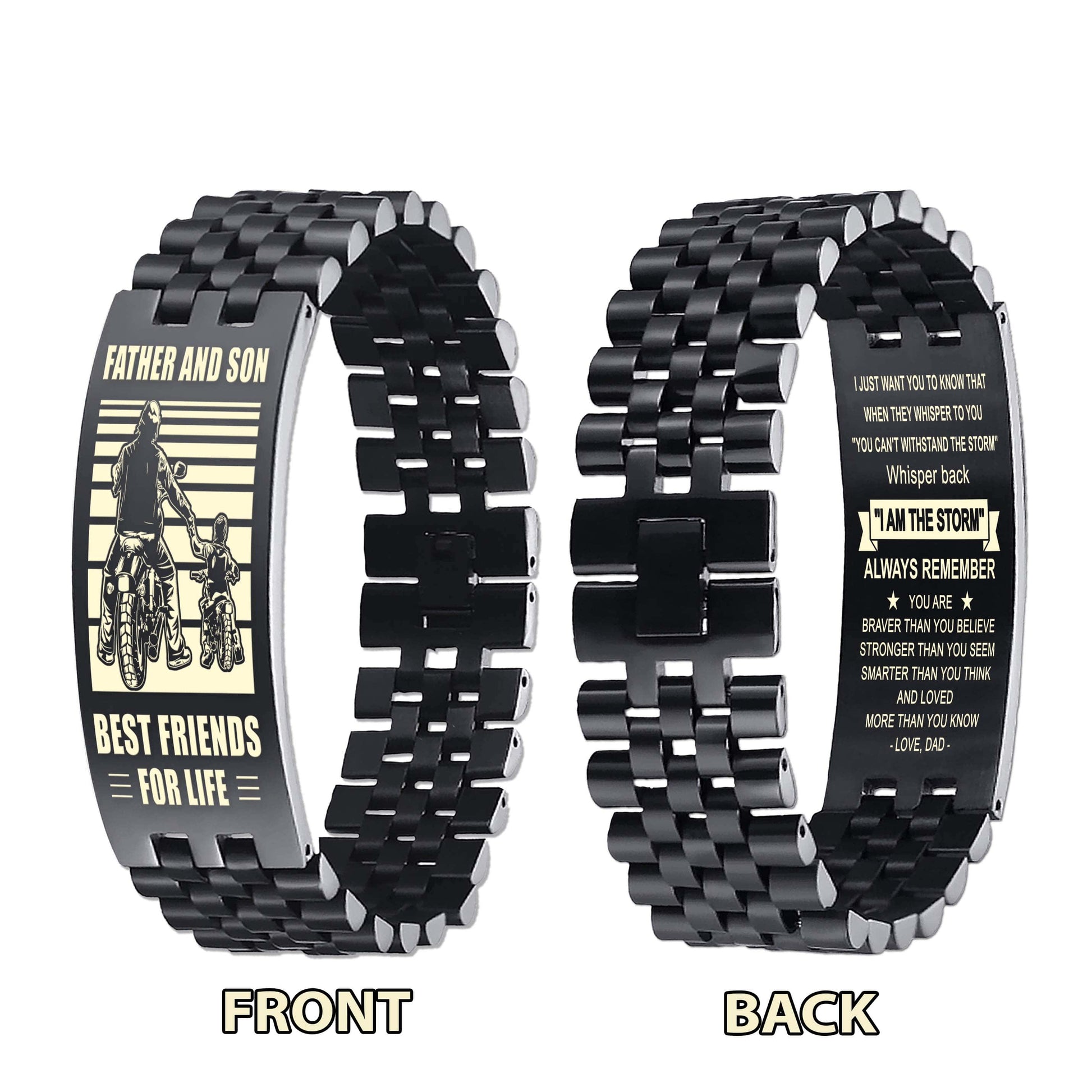 WBH Biker Personalized Double Sided Bracelet Father And Son Best Friends For Life - Message on the back side