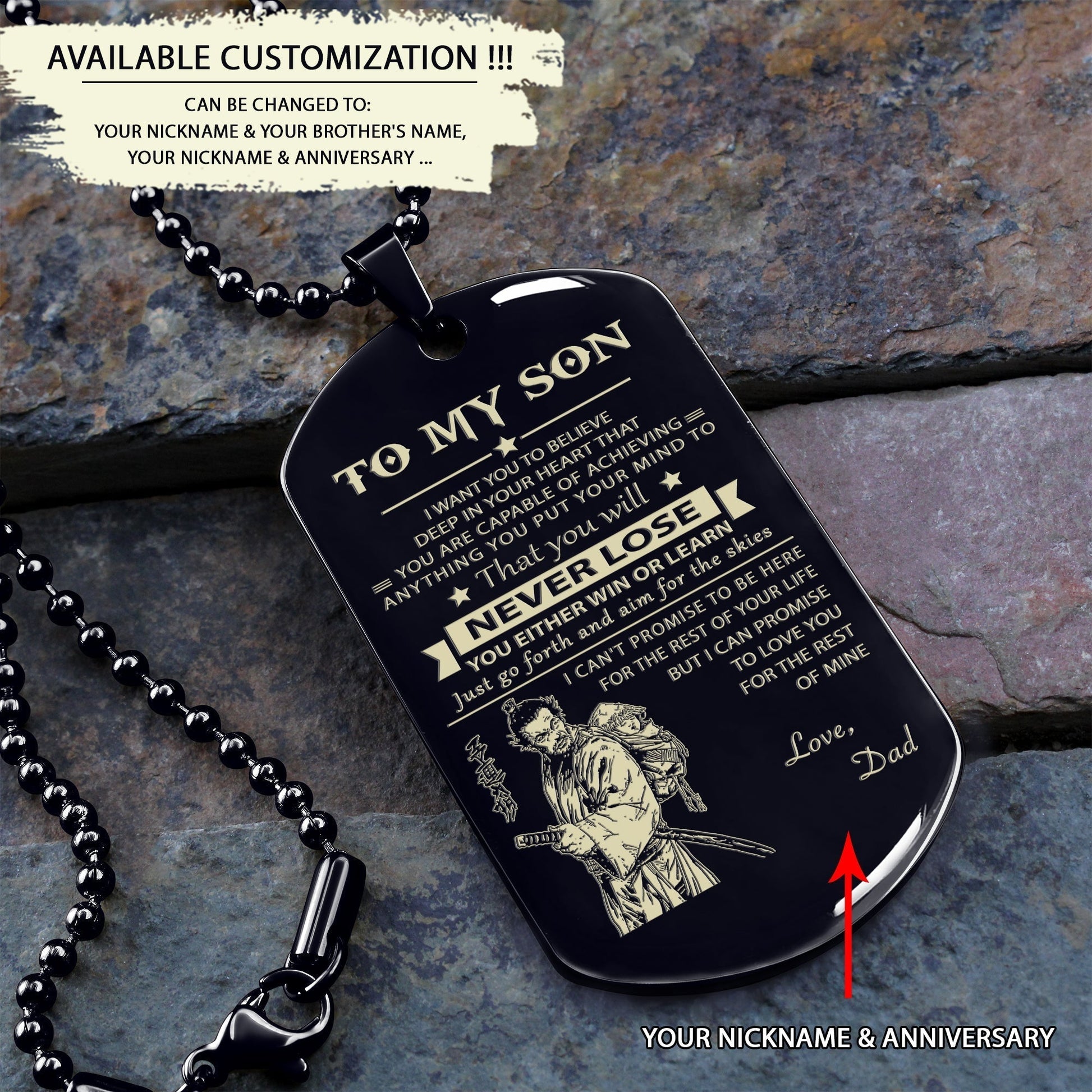 To my son-never lose - Gifts from dad mom to son - Engraved dog tag all style