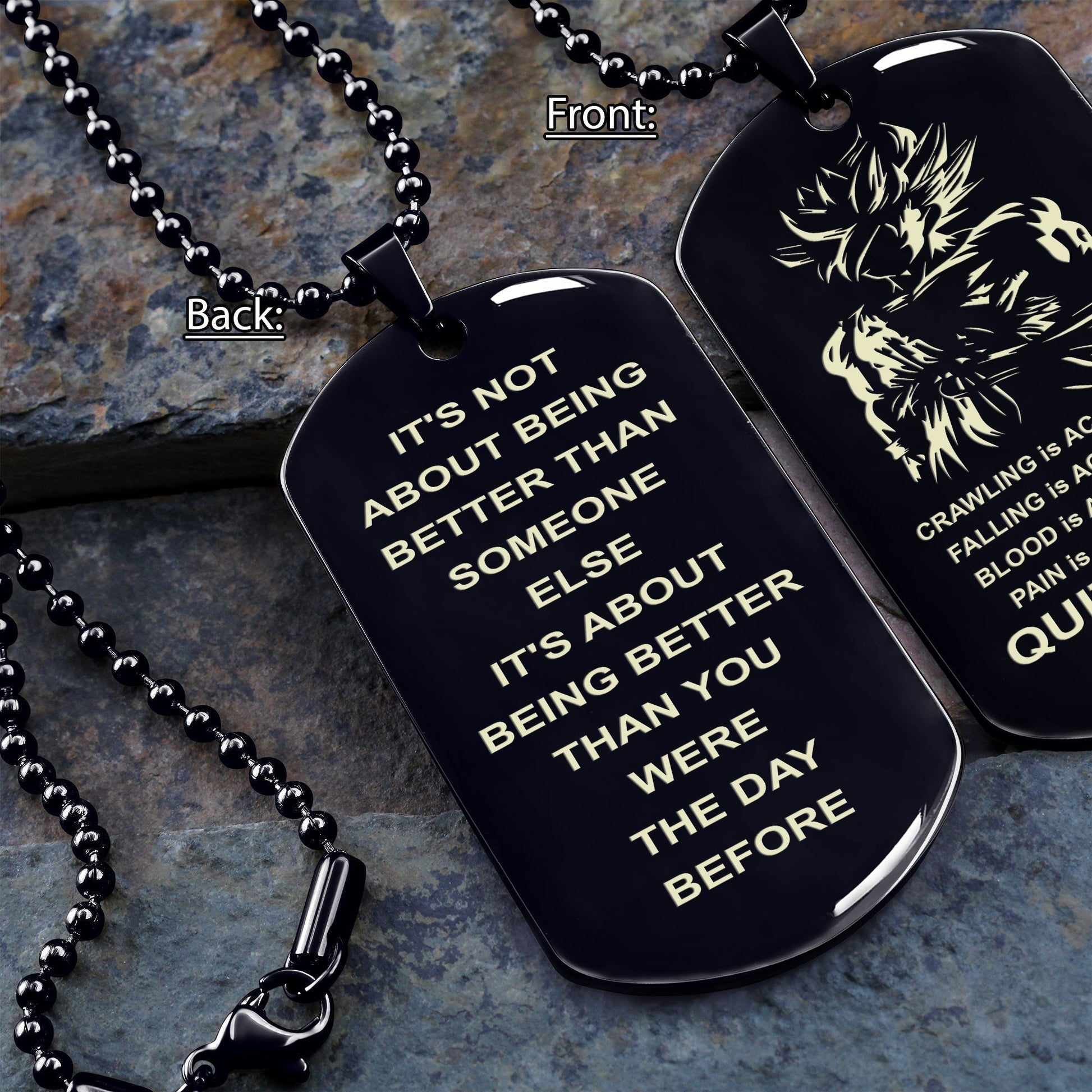 Quitting is not double side dog tag , It is not about better than someone else, It is about being better than you were the day before