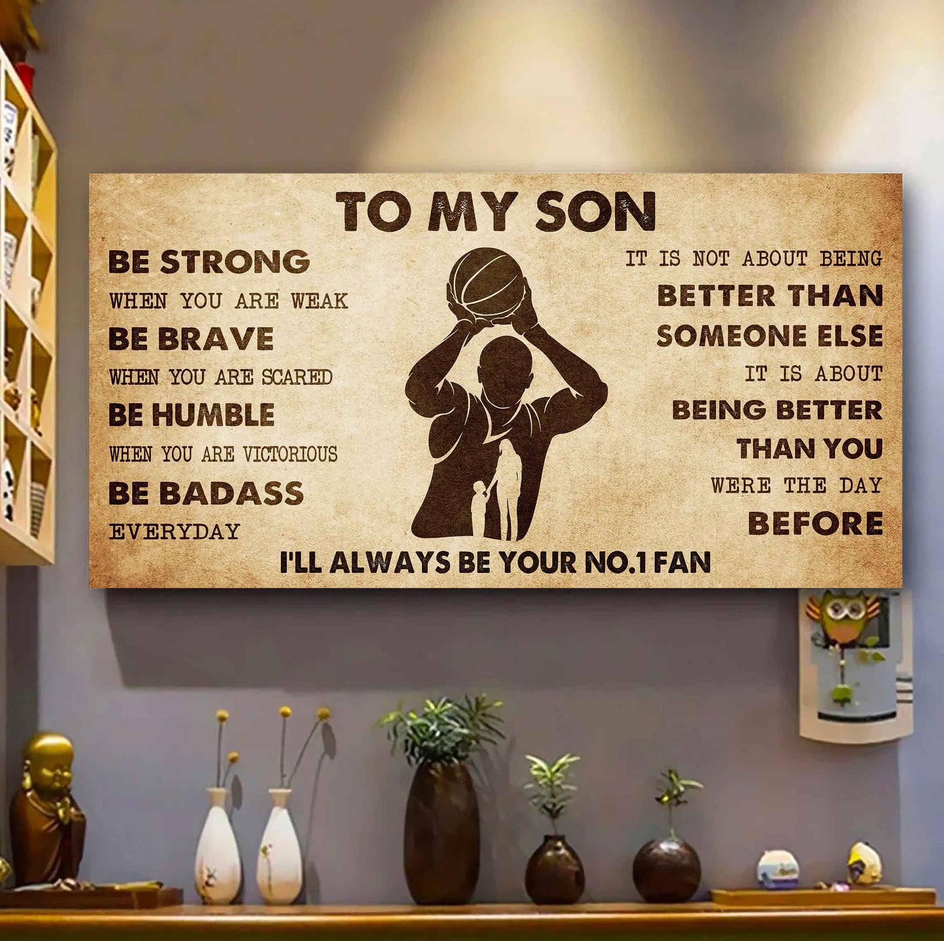Personalized Sport Poster Canvas I'll Be Your No 1 Fan Mom To Son - Be Strong When You Are Weak Be Badass Everyday