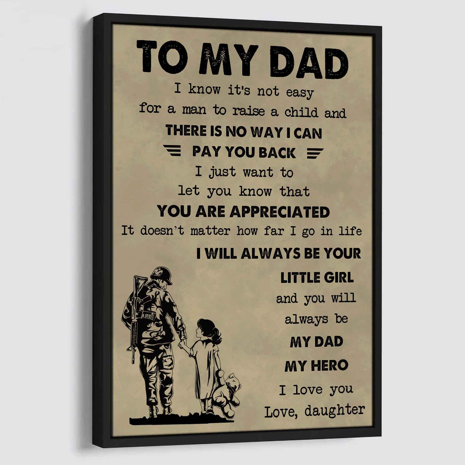 DBR Poster Canvas To My Dad I Know It's Not Easy To Raise A Child I Will Always Be Your Little Girl Gift From Daughter To Dad