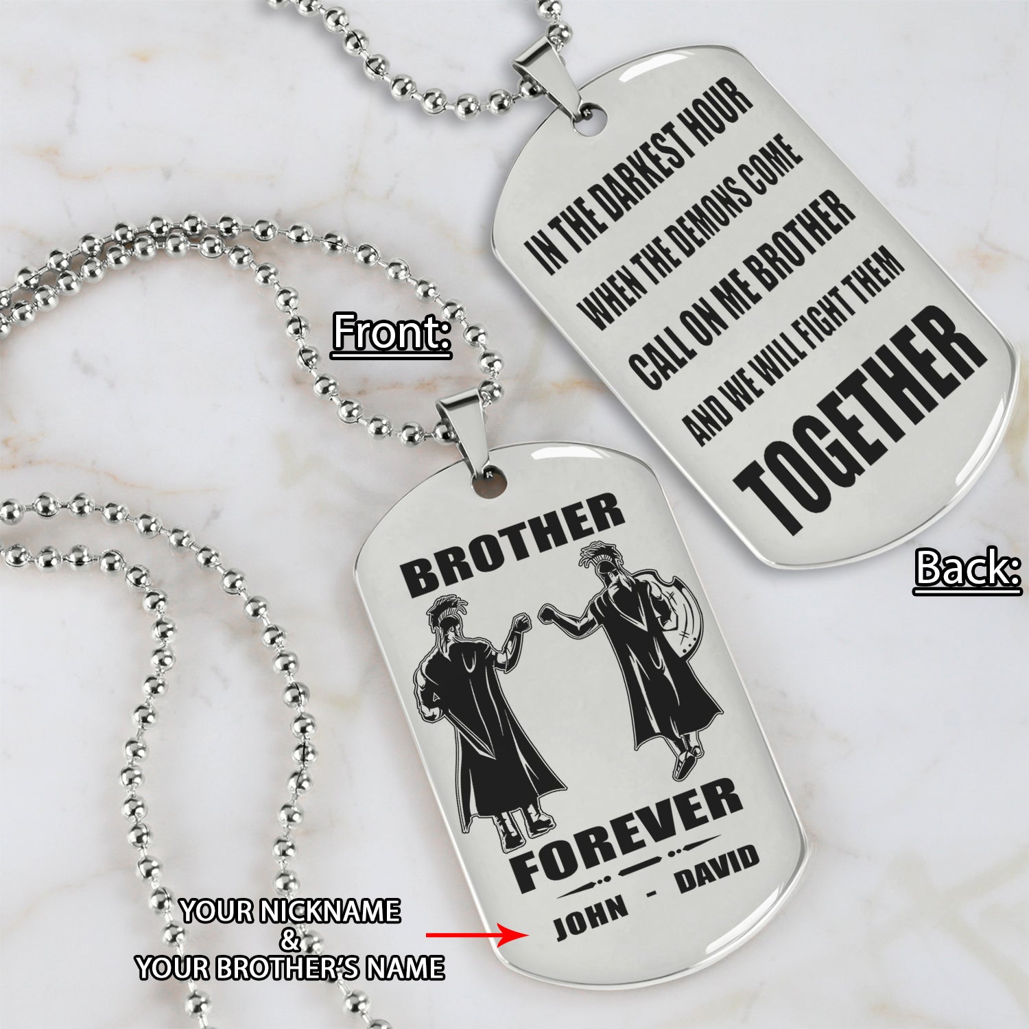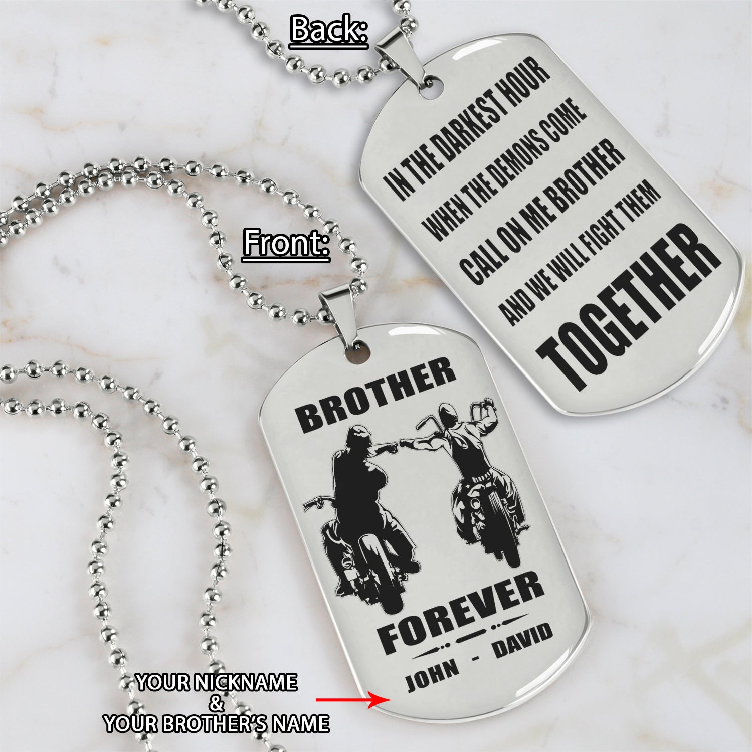 Biker customizable engraved black dog tag double sided gift from brother, brother forever