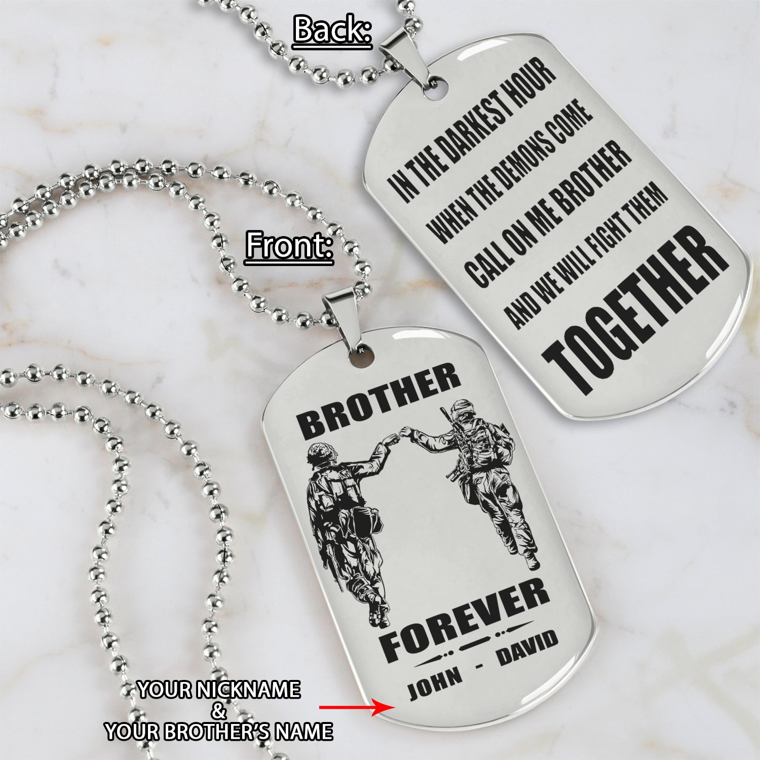 Spartan Call on me brother engraved white dog tag double sided. gift for brothers
