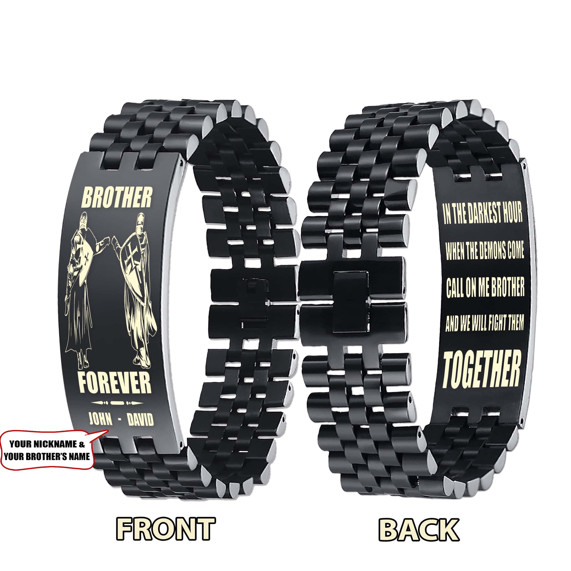 Samurai customizable engraved brother bracelet double sided gift from brother, brother forever, in the darkest hour, When the demons come call on me brother and we will fight them together