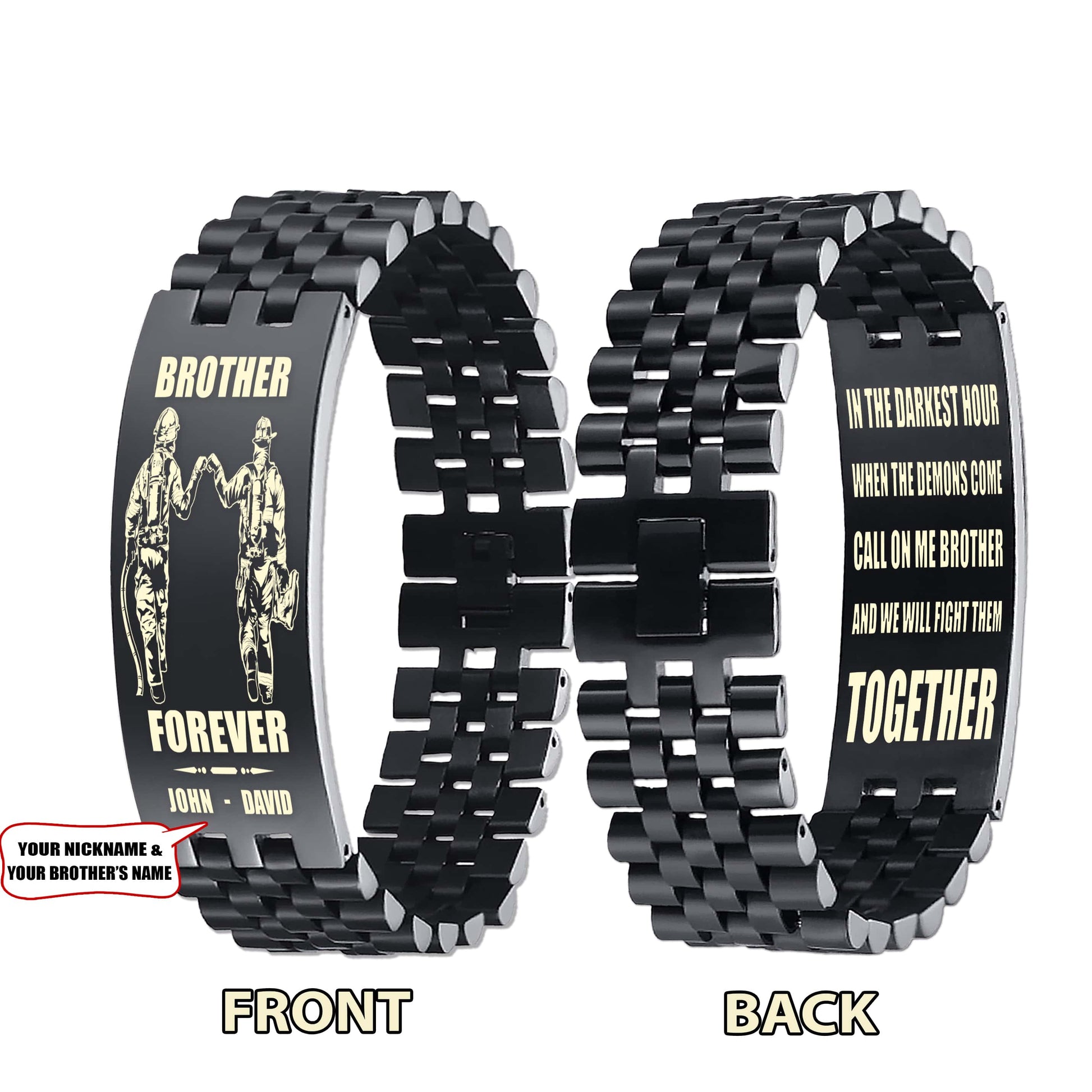 Viking customizable engraved brother bracelet double sided gift from brother, brother forever, in the darkest hour, When the demons come call on me brother and we will fight them together