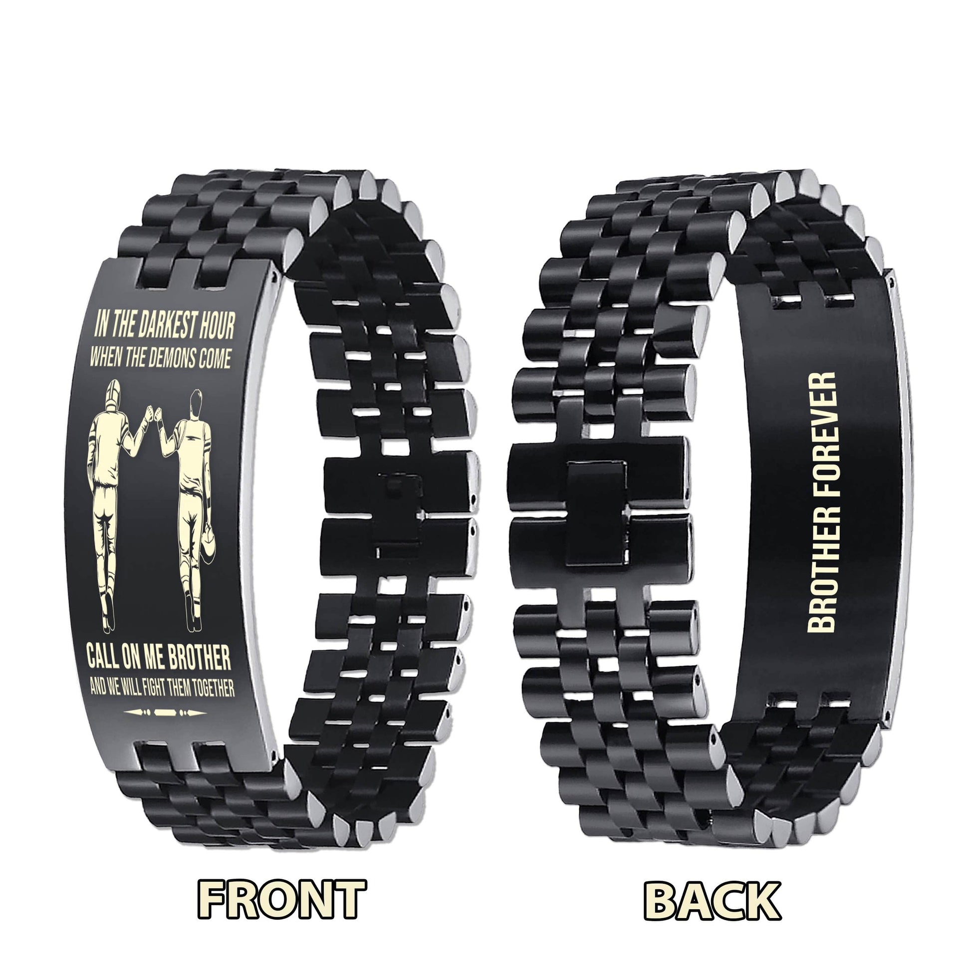 Sport bike brother Forever Customizable engraved brother bracelet double sided gift from brother, in the darkest hour, When the demons come call on me brother and we will fight them together