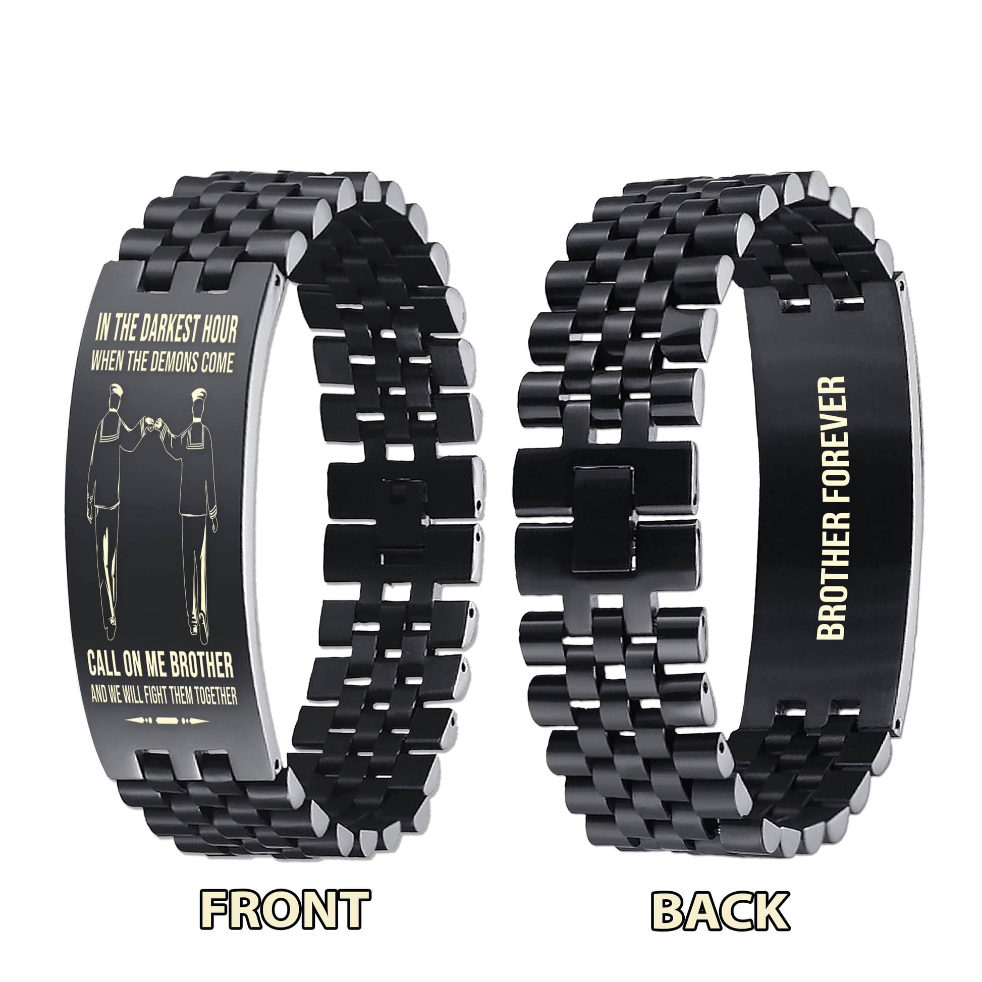 Knight templar brother Forever Customizable engraved brother bracelet double sided gift from brother, in the darkest hour, When the demons come call on me brother and we will fight them together