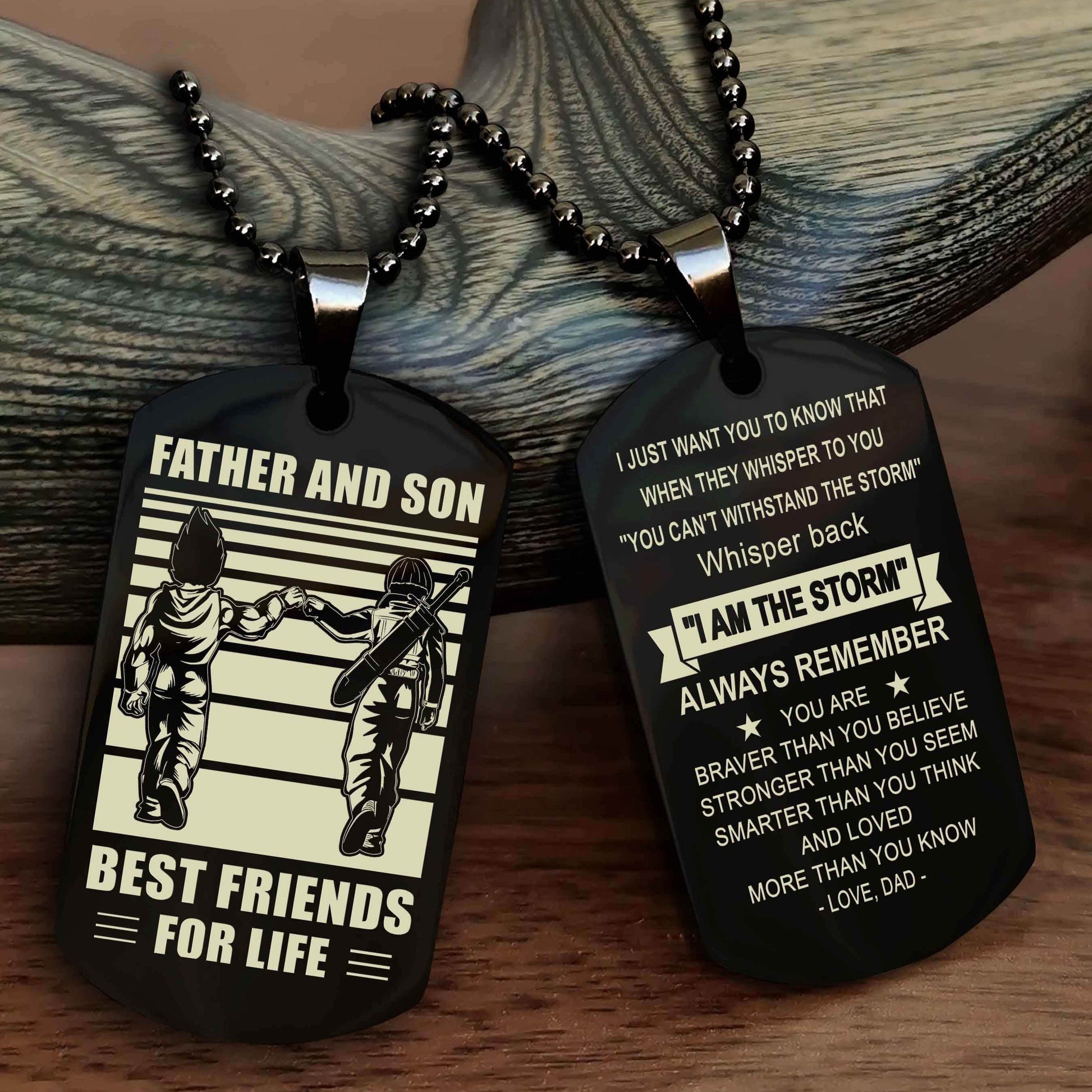 The dog tag contains a meaningful message that a father wants to share with his son. It is a perfect gift for birthdays, anniversaries, or any special occasion.