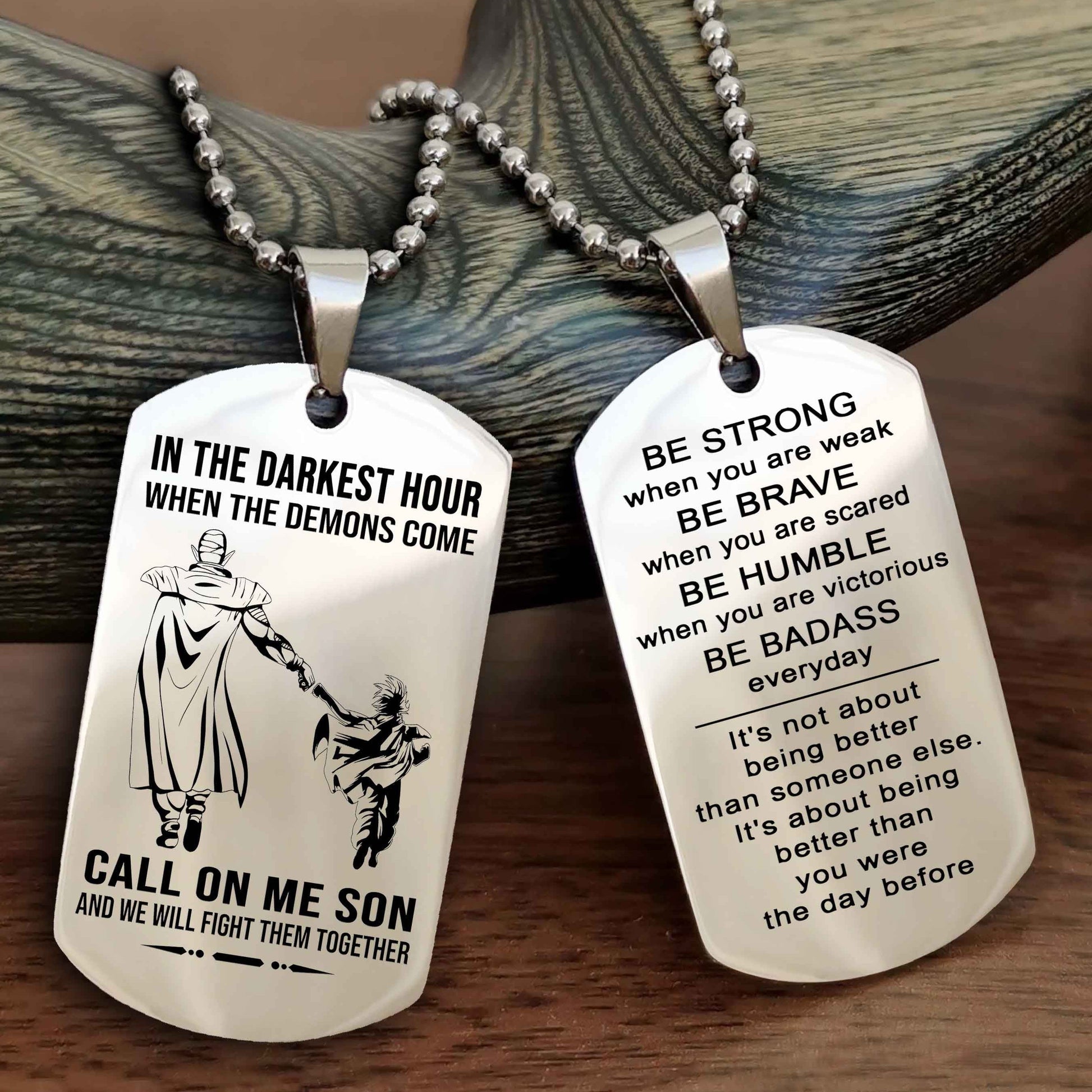 DRB Double Sided Dog Tag Call On Me Son - Gift For Son From Dad Be Strong When You Are Weak Be Badass Everyday
