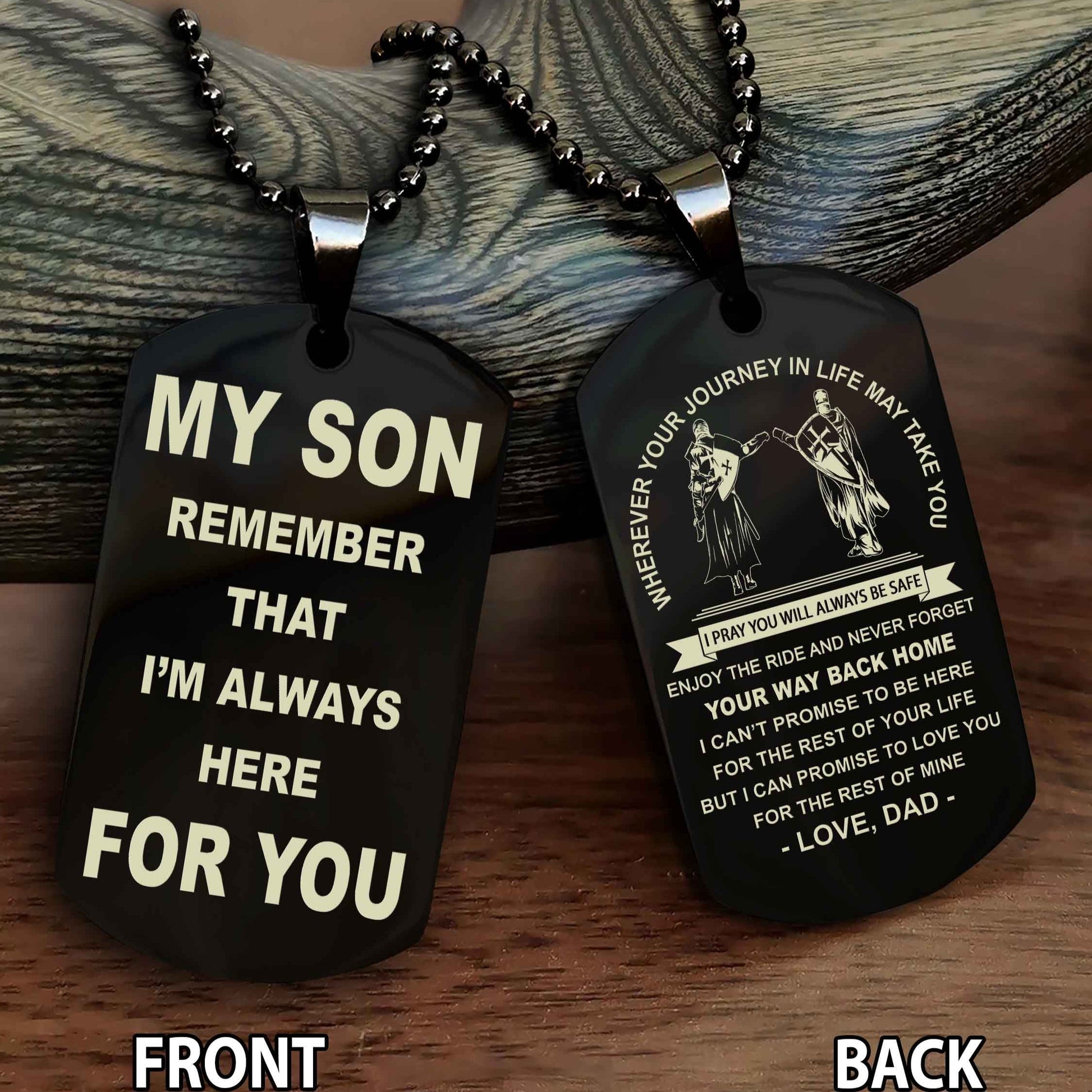 Knight Templar Double Sided Dog Tag My Son Remember That I'm Always Here For You - Enjoy The Ride And Never Forget Your Way Back Home