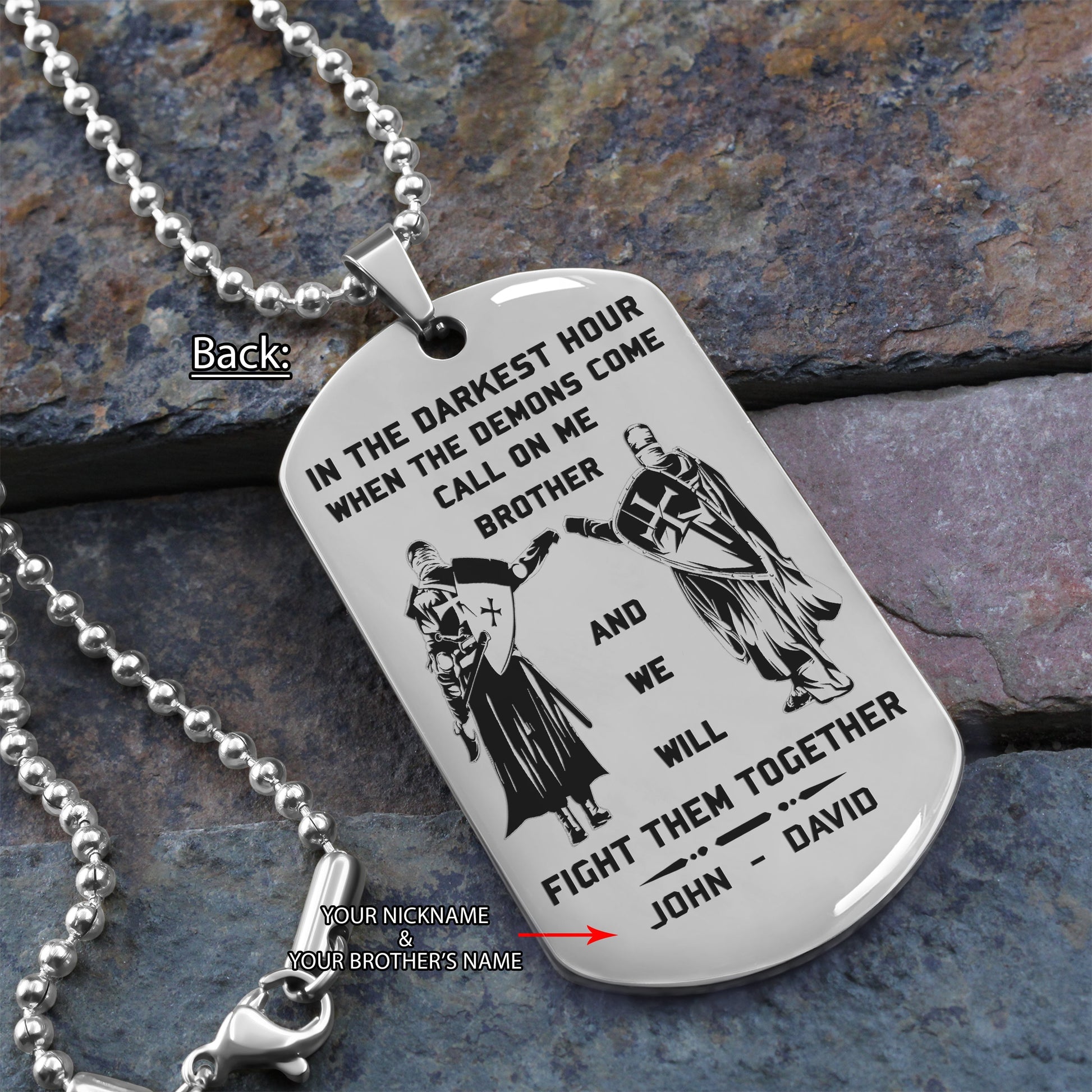 OP Engraved one sided dog tag gift from brother, In the darkest hour When the demons come call on me brother and we will fight them together