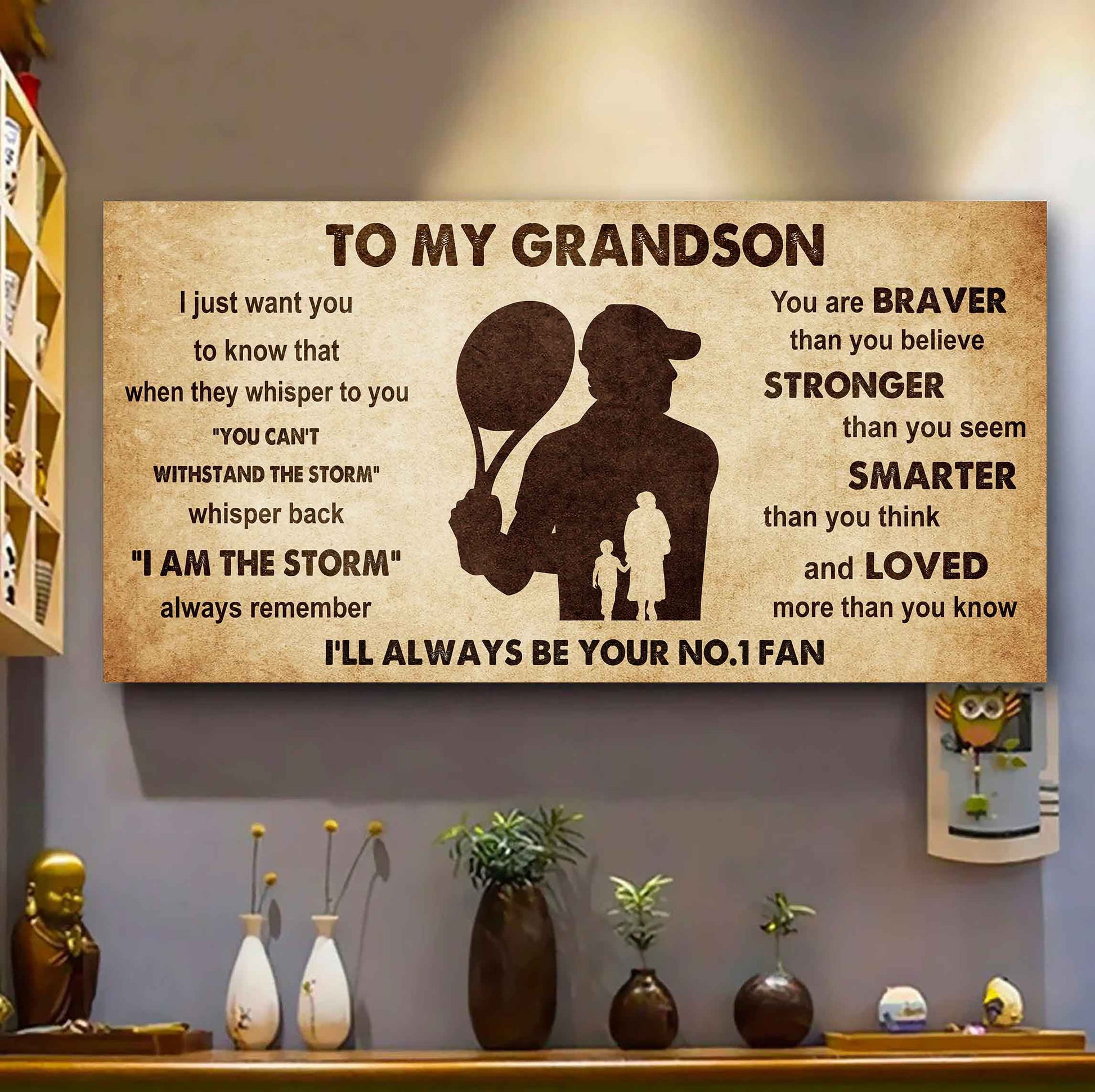 Personalized Sport Poster Canvas I'll Be Your No 1 Fan Grandma To Grandson - Whisper Back I'm The Storm