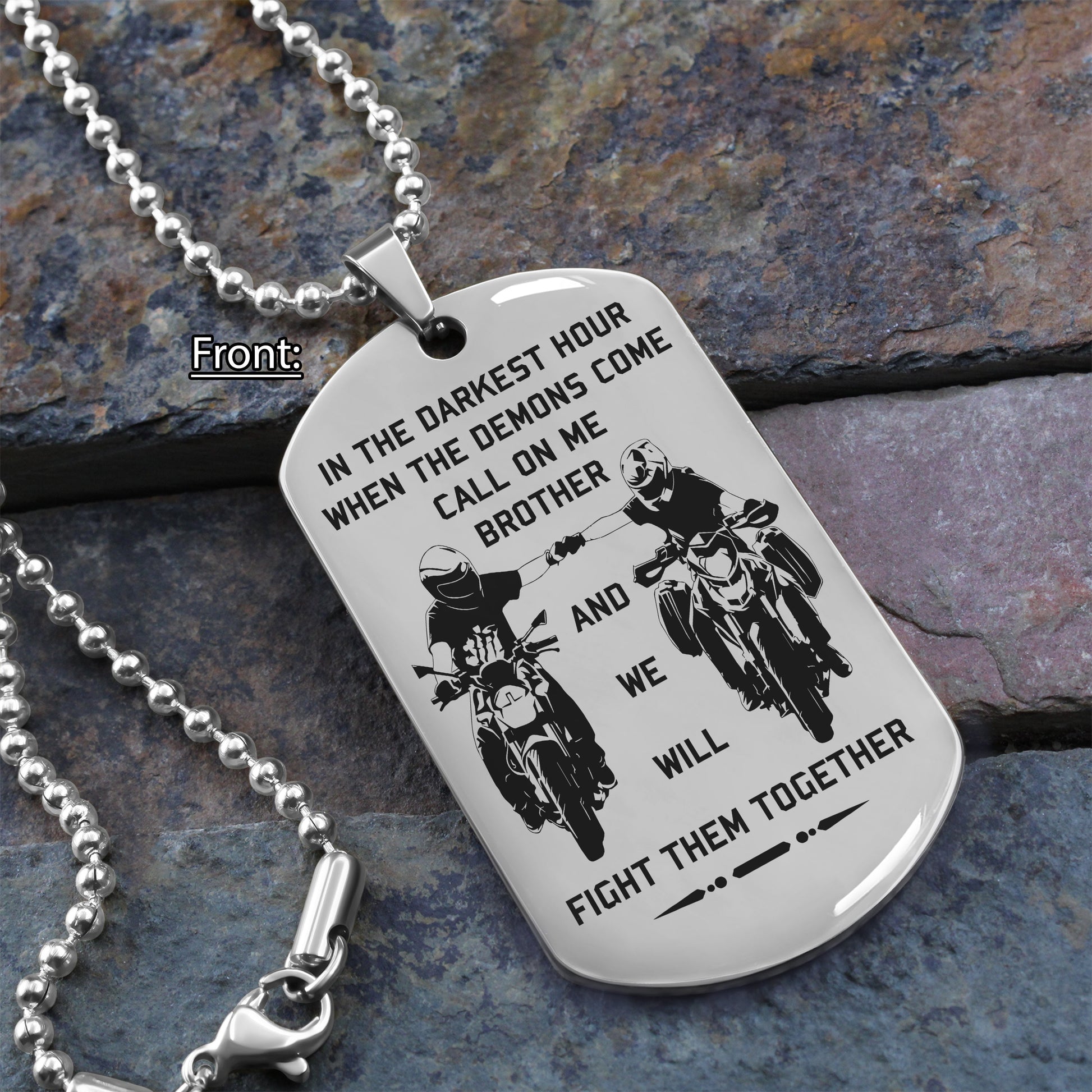 Samurai Customizable engraved brother dog tag gift from brother, In the darkest hour, When the demons come call on me brother and we will fight them together